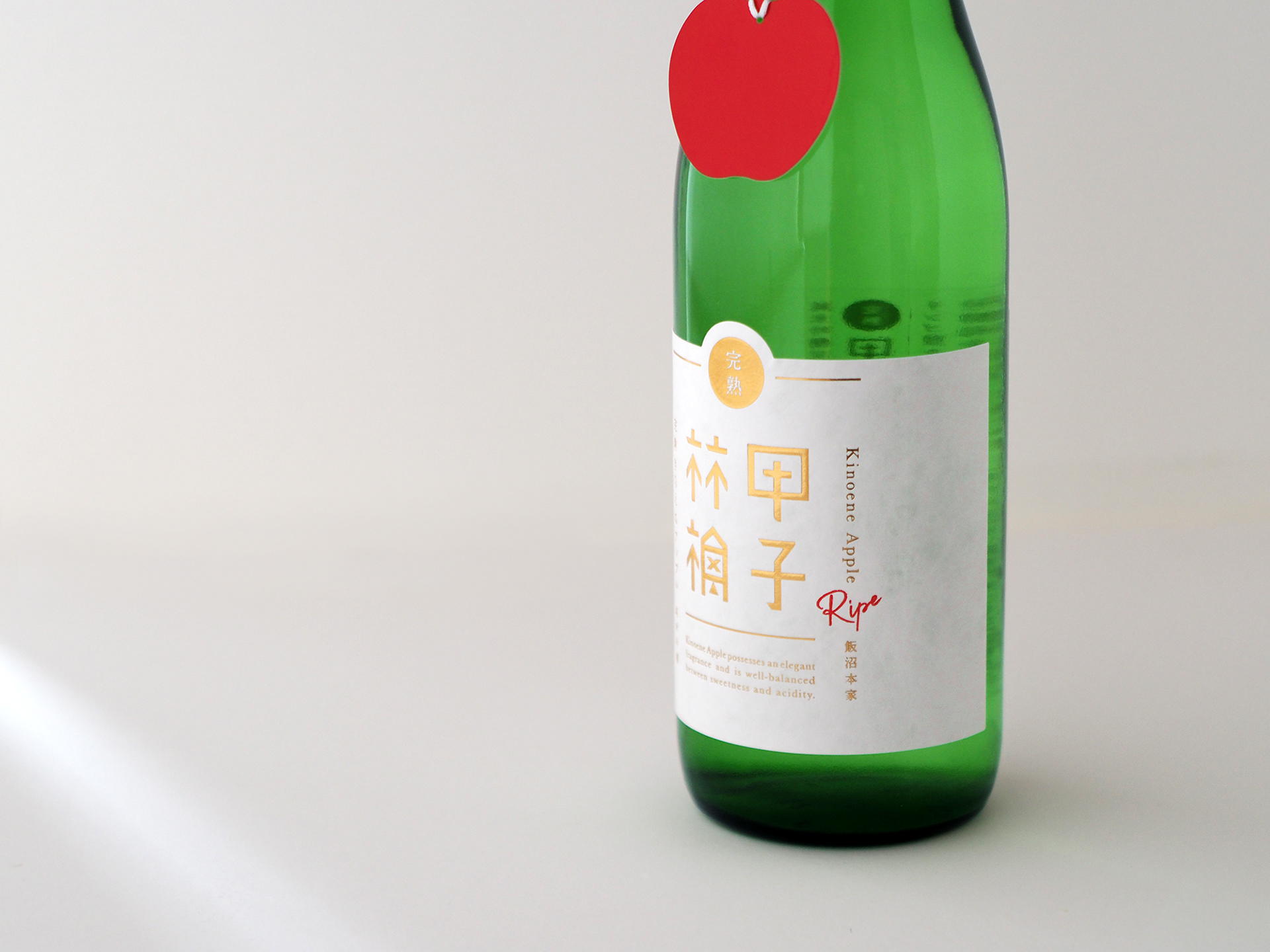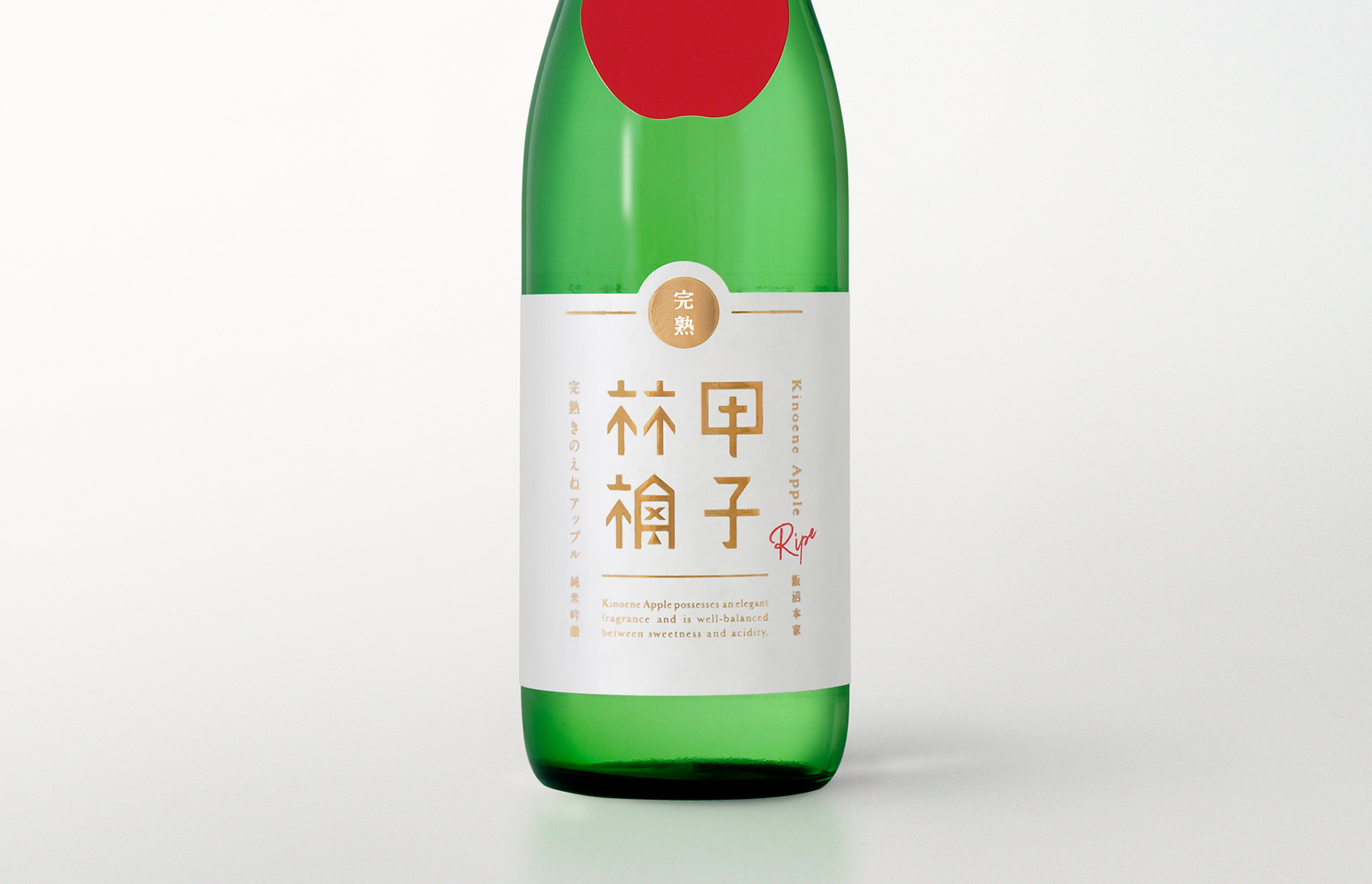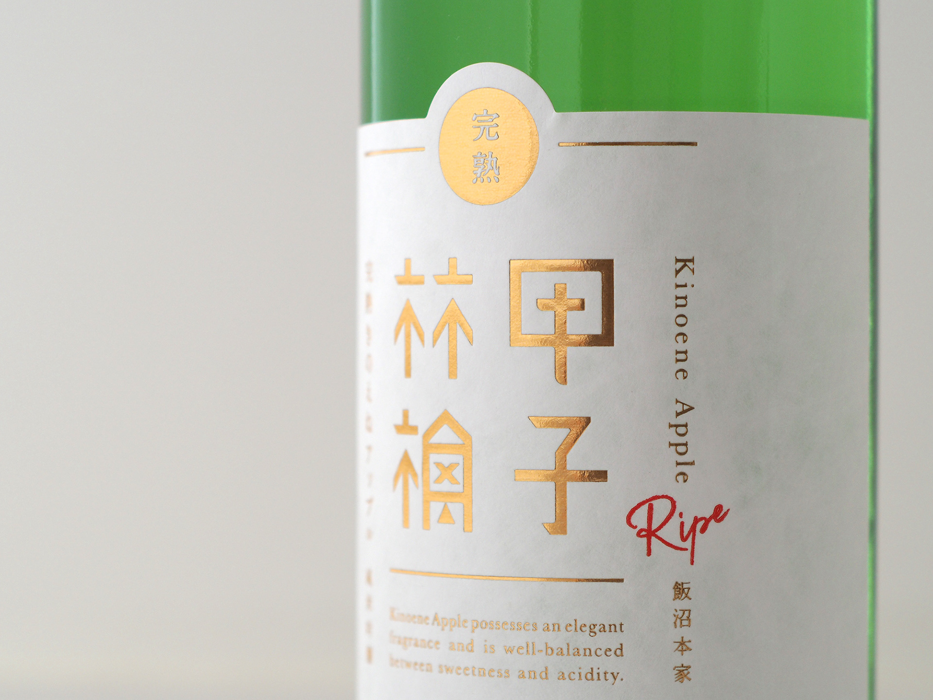 「完熟甲子アップル」は、千葉県酒々井町で300年以上続く酒蔵「飯沼本家」が、季節商品として毎年提供している純米吟醸酒。白ワインに含まれるリンゴ酸を多く産む「協会77号酵母」を使用することで、甘みと酸味の絶妙なバランスや、軽快な後味が楽しめるお酒「甲子アップル」を火入れ、熟成させた商品です。tegusuでは、同商品のパッケージデザインを行いました。
