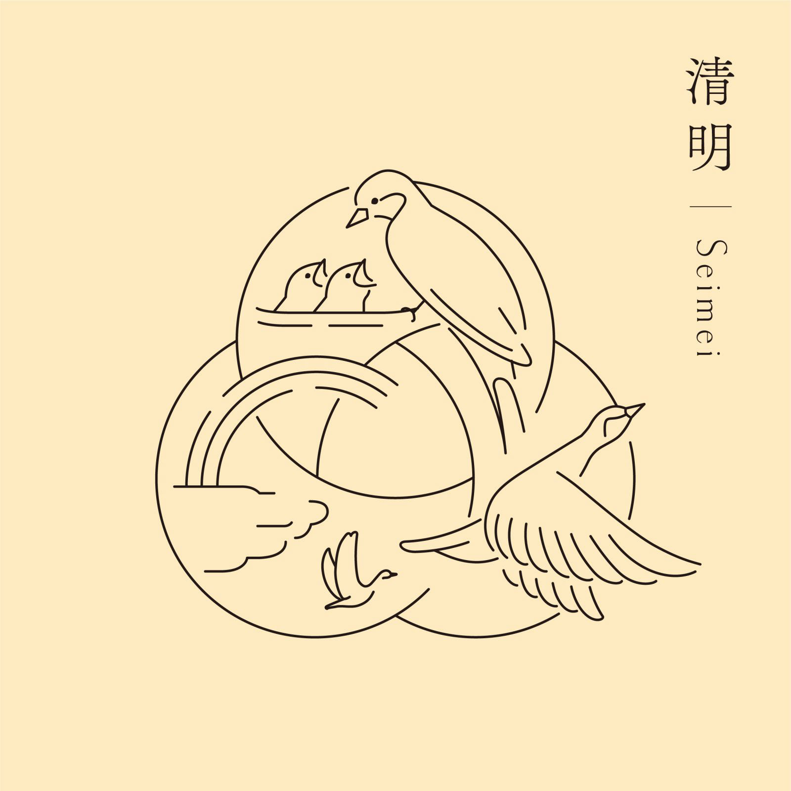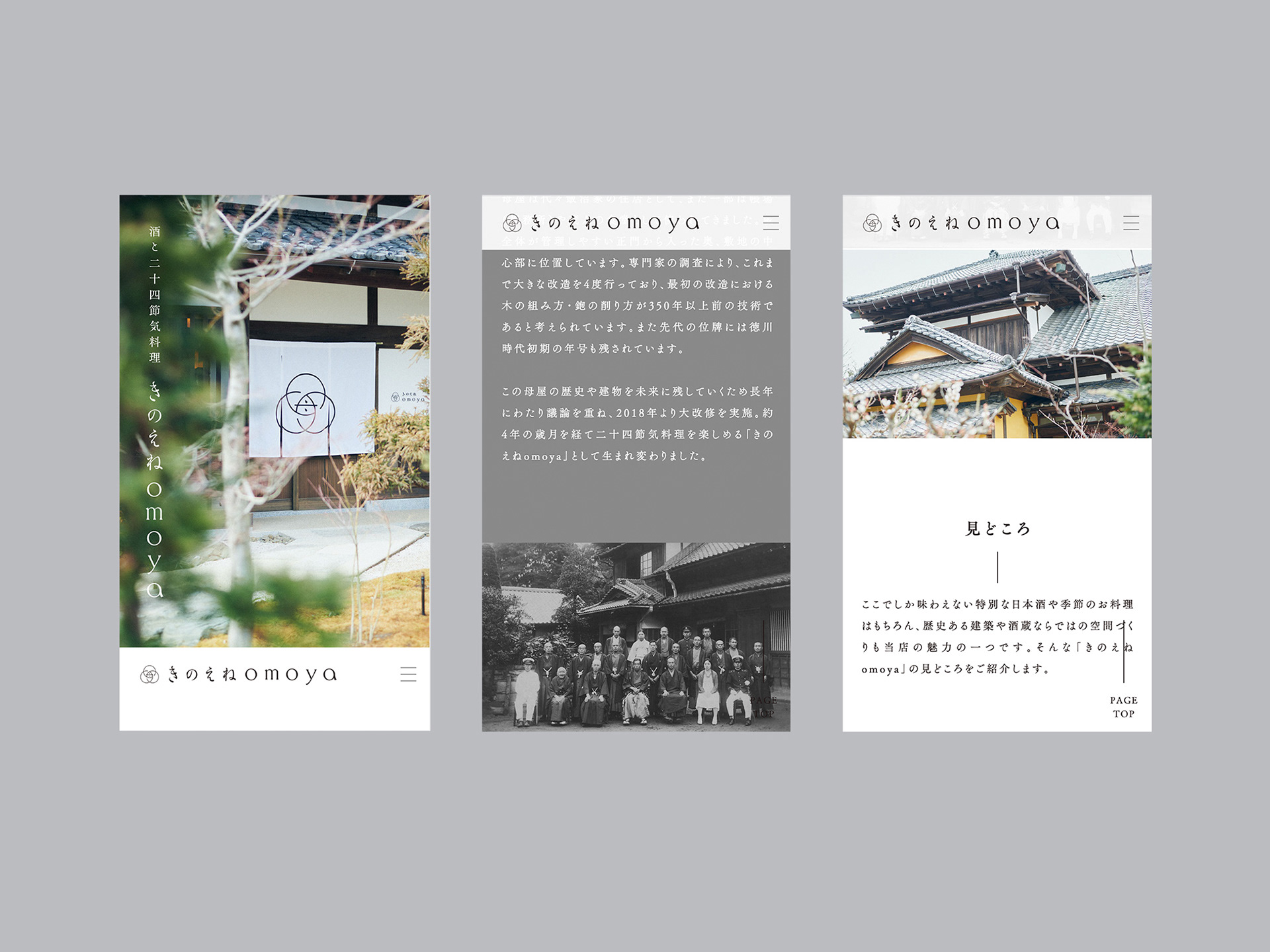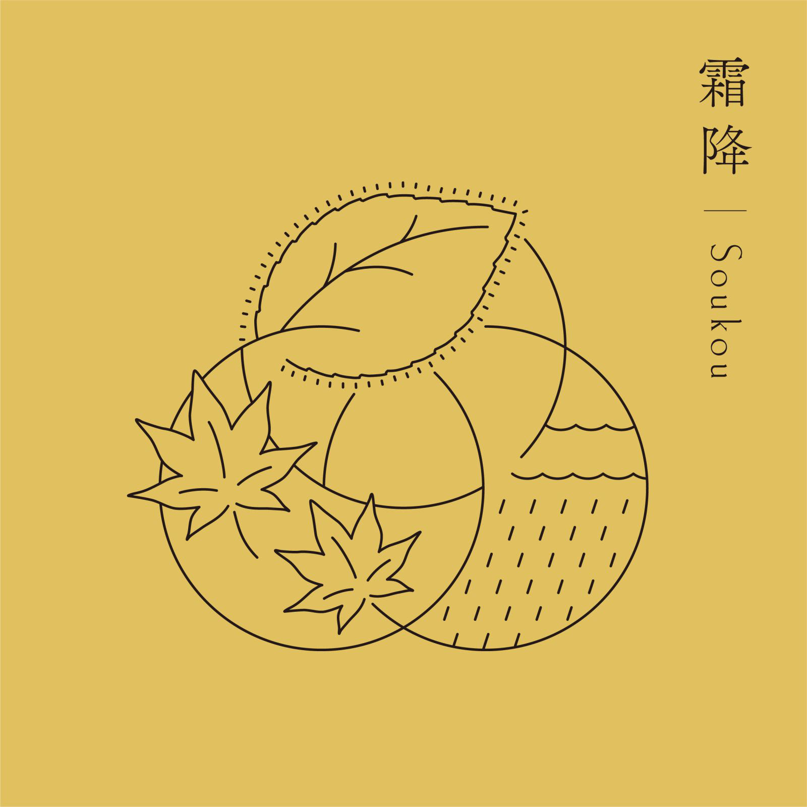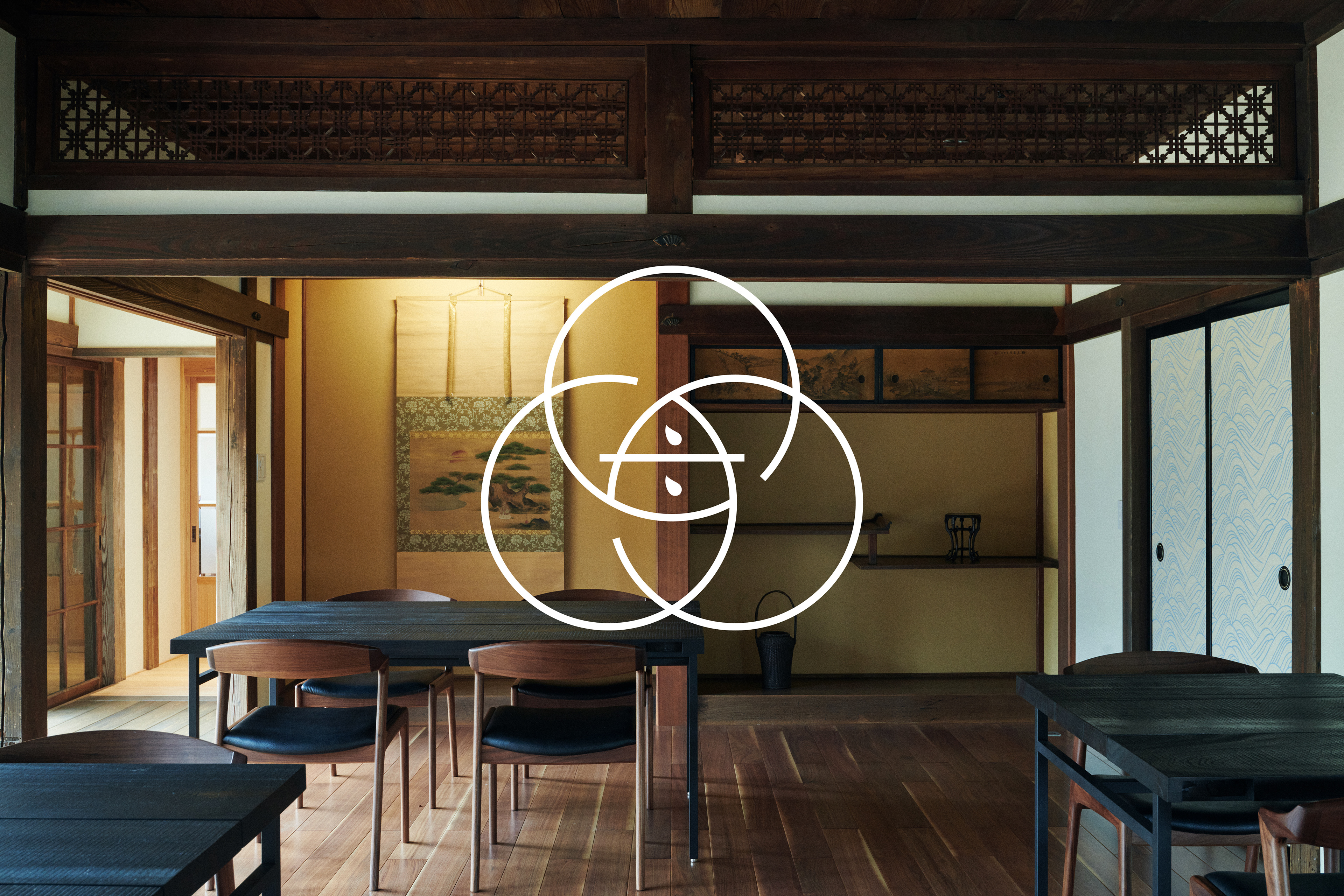 Each seasonal cycle is composed of three weather conditions: Sho ko(first term), Ji ko(second term), and Makko(last term). Each of these is defined in detail in terms of weather movements and changes in plants and animals, and is collectively referred to as the "72 Ko(72 seasons). We defined the three circles that make up the word "omoya" as the first, second, and last terms, and designed the "Kinoene omoya" symbol by combining these three circles. The shape of the center of the symbol represents the Chinese character for "母" (from name of omoya(母屋).