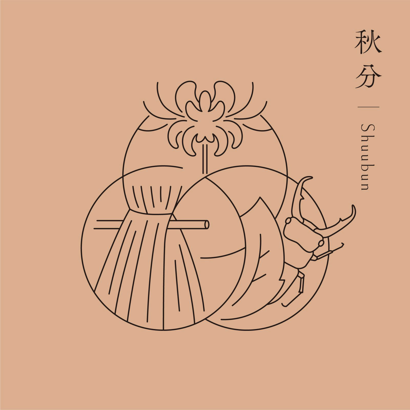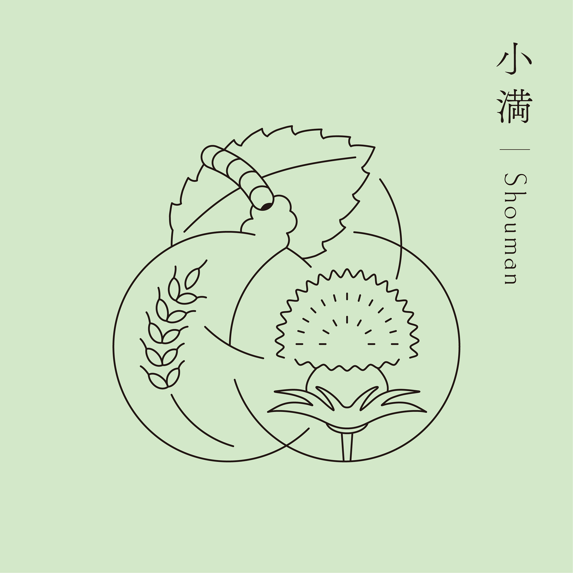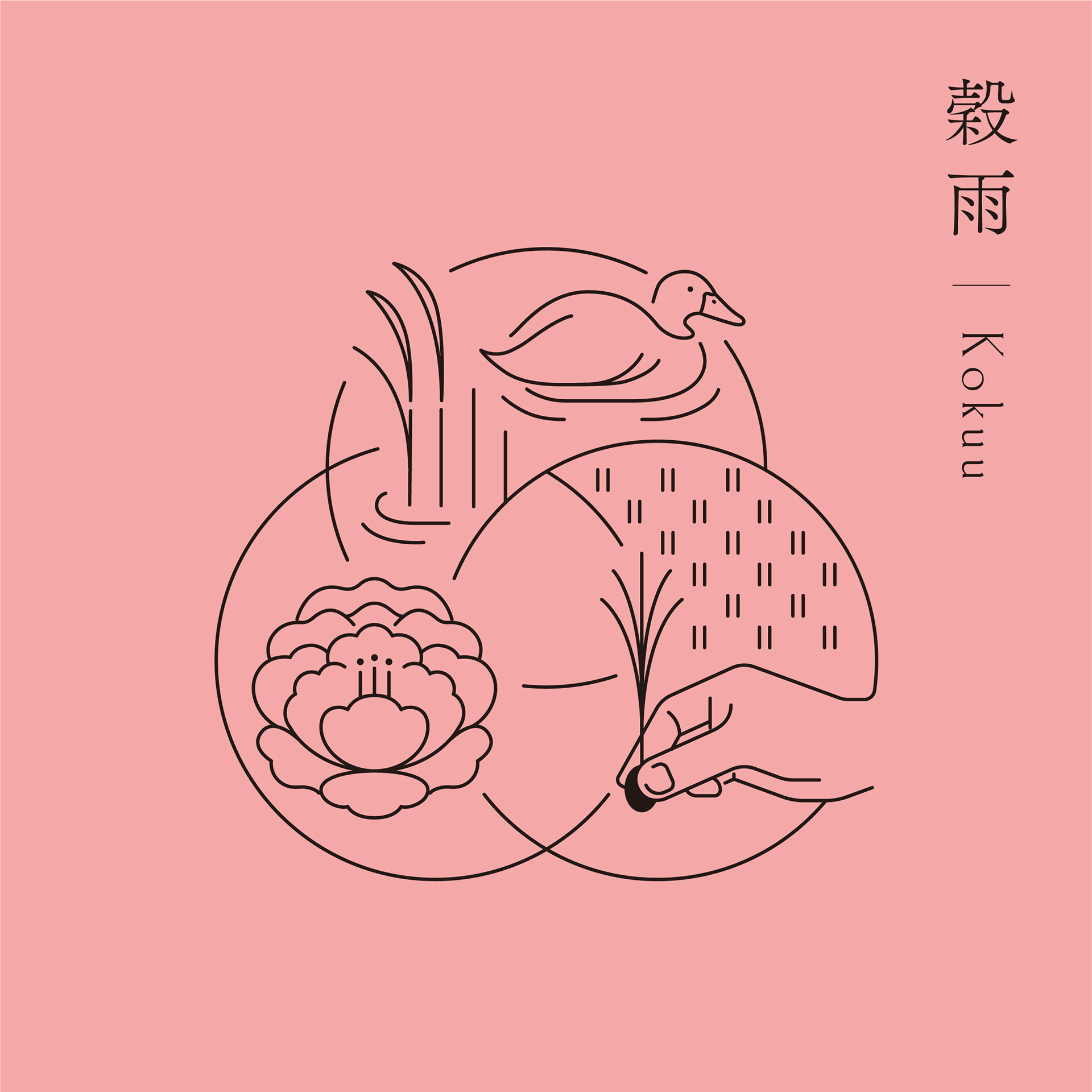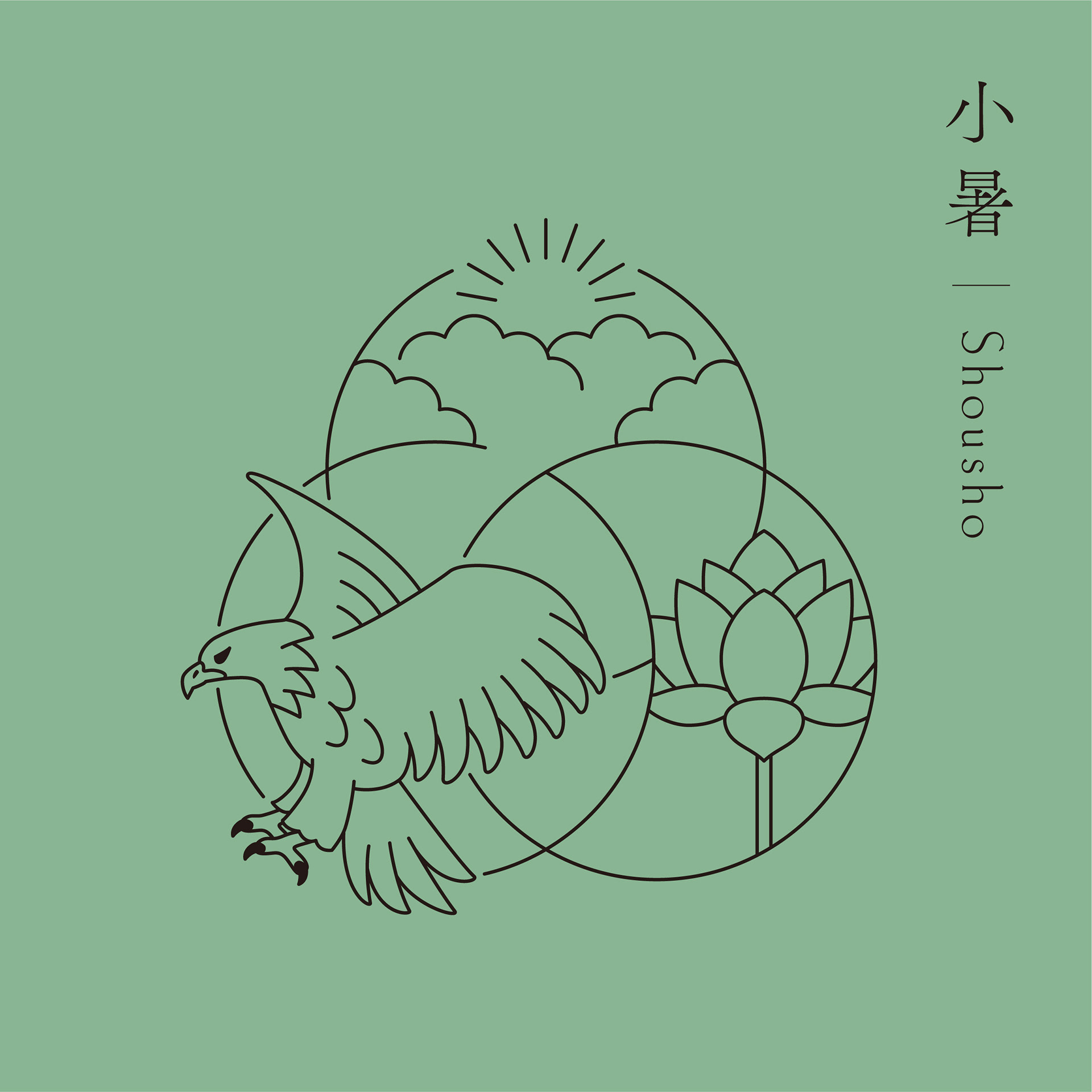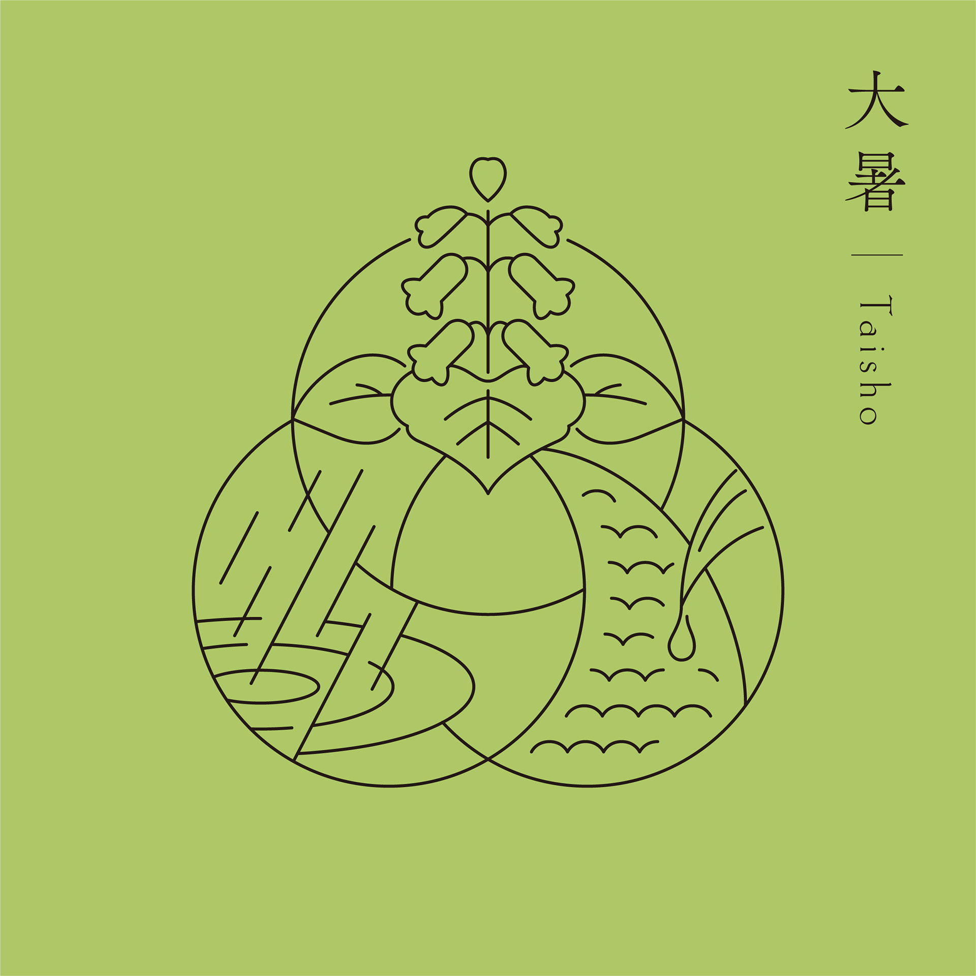 Each seasonal cycle is composed of three weather conditions: Sho ko(first term), Ji ko(second term), and Makko(last term). Each of these is defined in detail in terms of weather movements and changes in plants and animals, and is collectively referred to as the "72 Ko(72 seasons). We defined the three circles that make up the word "omoya" as the first, second, and last terms, and designed the "Kinoene omoya" symbol by combining these three circles. The shape of the center of the symbol represents the Chinese character for "母" (from name of omoya(母屋).