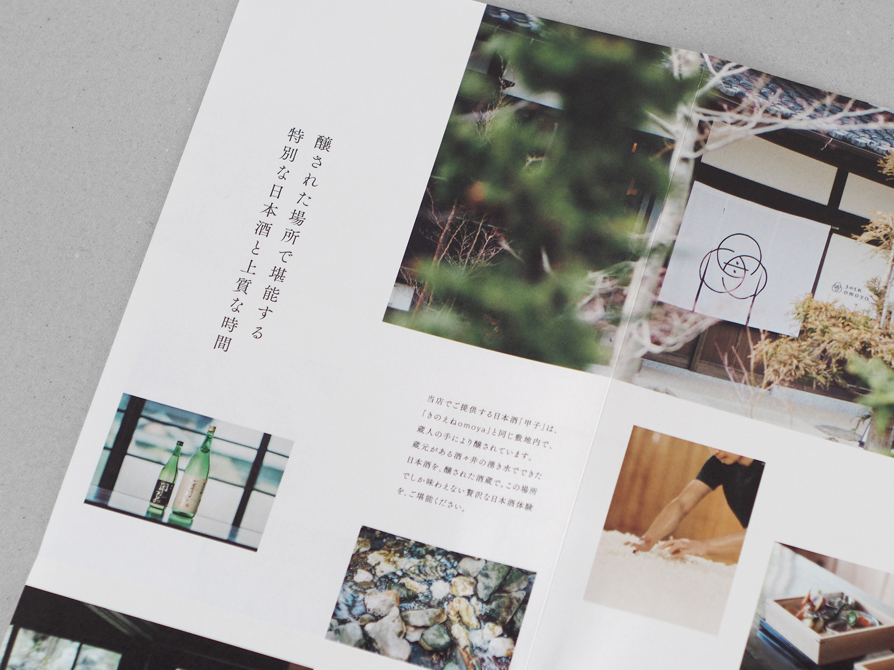 The space is a fusion of old beams and fittings and interior design by contemporary artists. The chef of the famous restaurant "Yoshimura" was invited to supervise the seasonal cuisine. Special sake that can only be tasted at the brewery. This is an old private house restaurant where you can enjoy quality time. tegusu provided overall direction and design, from naming and concept organization to VI design, tabletop tools, printed materials, website, and limited edition sake.