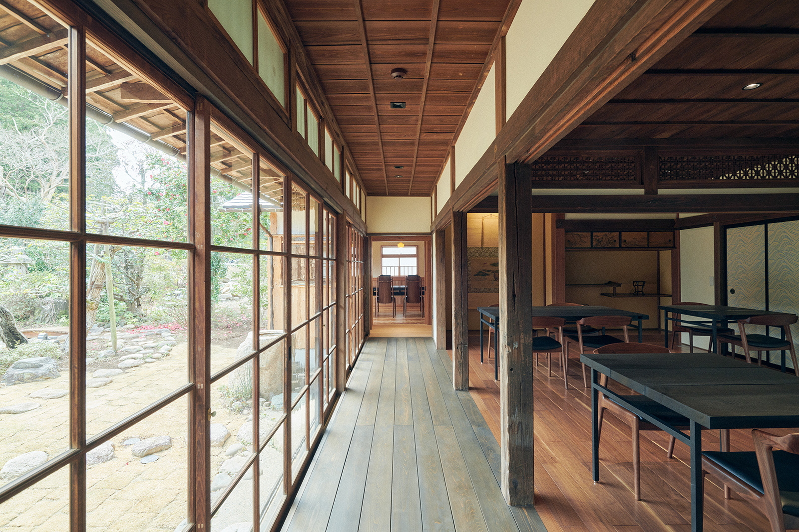 On the grounds of the Iinumahonke(飯沼本家) sake brewery in the town of Sakai, Chiba Prefecture, there is a main house (an important cultural property) that is over 300 years old and has been home to the head of the brewery for generations. This building was extensively renovated to create the sake and 24-season cuisine restaurant "Kinoene omoya" in 2022.