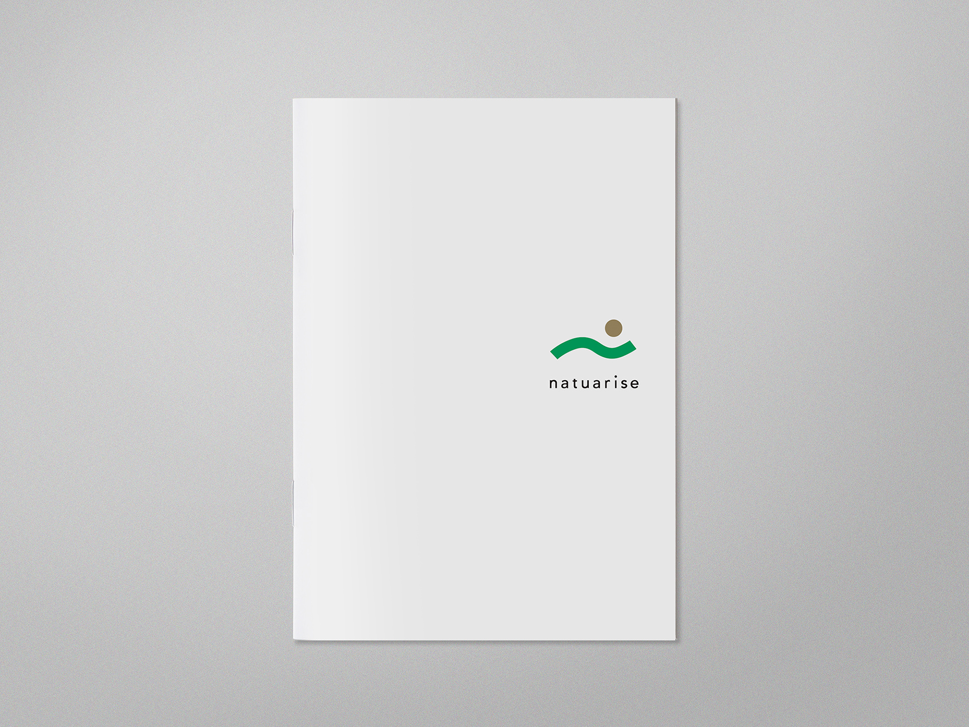 帰化する/自然なものにすることを意味する「naturalize」と、空に昇る/出るを意味する「rise」を掛け合わせ生まれたブランド名。自然(地球)を保つために不可欠な存在である太陽と、その恩恵を受ける人との関係を感じさせるロゴタイプにしたいと考え、「natuarise」を小文字表記にすることで「i」が際立つようなデザインにしています。