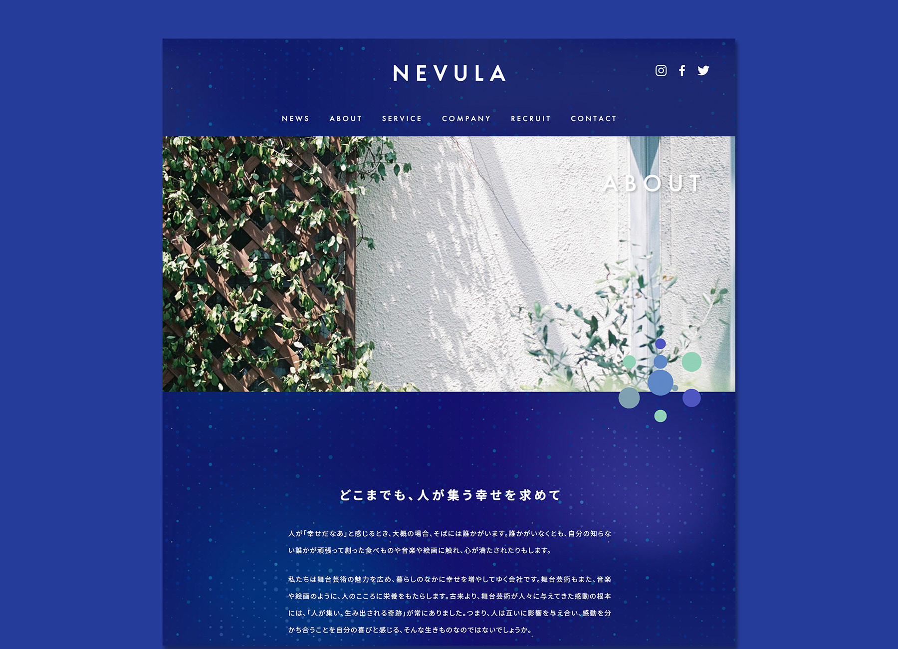 創造性あふれる個性が集まった人間カンパニー。人が集う幸せ。星の集合体である星雲を意味する「ネビュラ」の社名と、同社が大切にしている理念には、元より一貫したメッセージ性がありました。