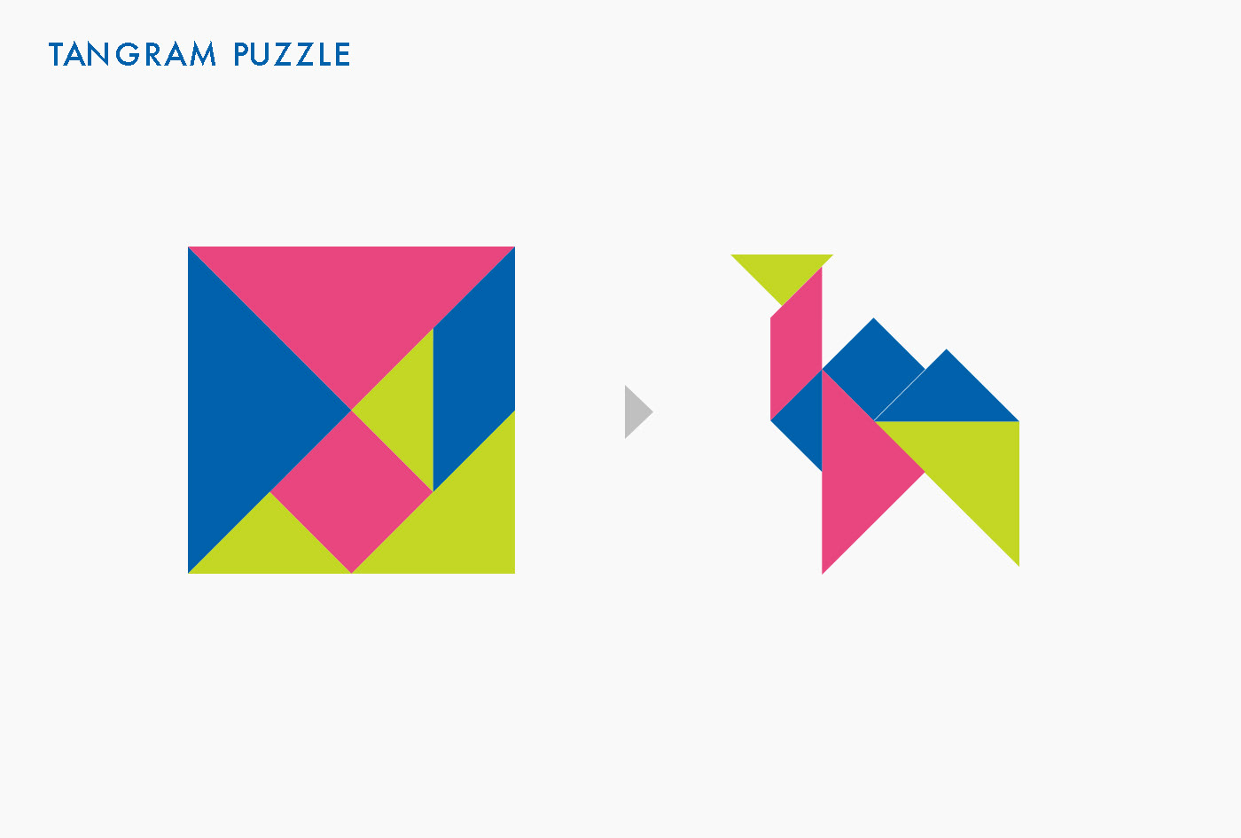 今回依頼を受け作成したサービスアイデンティティは、タングラムそのものをモチーフにしている。子供の発想力のように無限の展開が可能なロゴは、名刺やWEB以外に、子供に配るステッカーやワッペンへの展開も想定して作成されている。1人1人がお気に入りの動物を選べるようにするなど、好奇心を刺激するアイデンティティとして、長く親しまれる事を願ってデザインした。