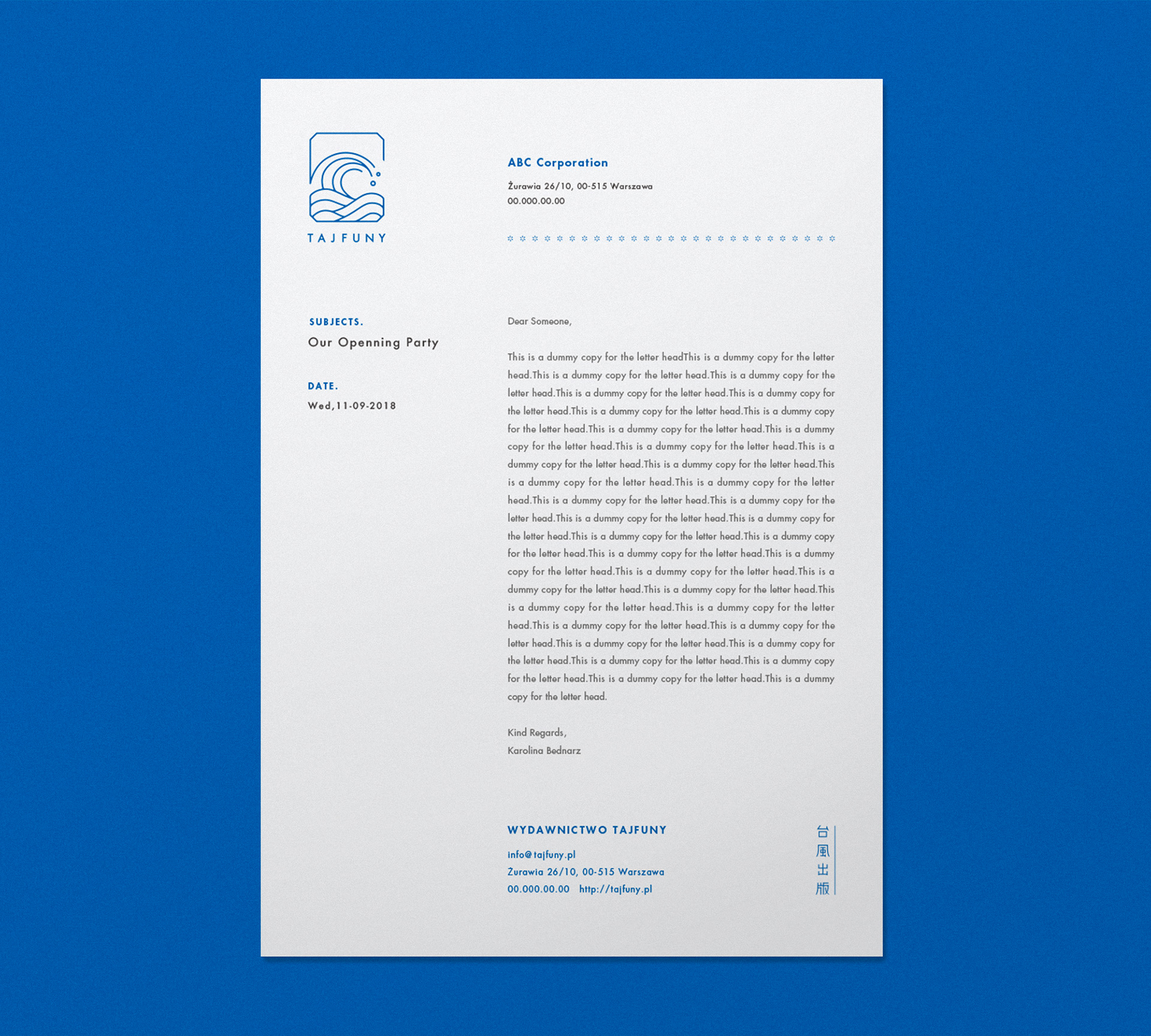 TAJFUNY is a Polish publisher & bookstore that handles Asian literary work. With a mission to translate mainly Japanese books into Polish in order to spread its allurement, they opened their store in Warsaw in October, 2018. We had been in charge of the design for their brand identity symbol mark, along with the branding tools, promotion visuals for social media, and book design for their publications.